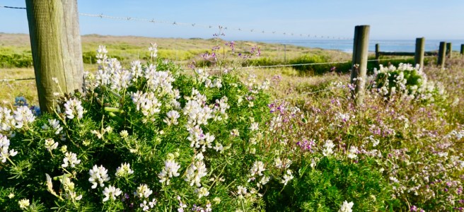 Growing along barbed wire,