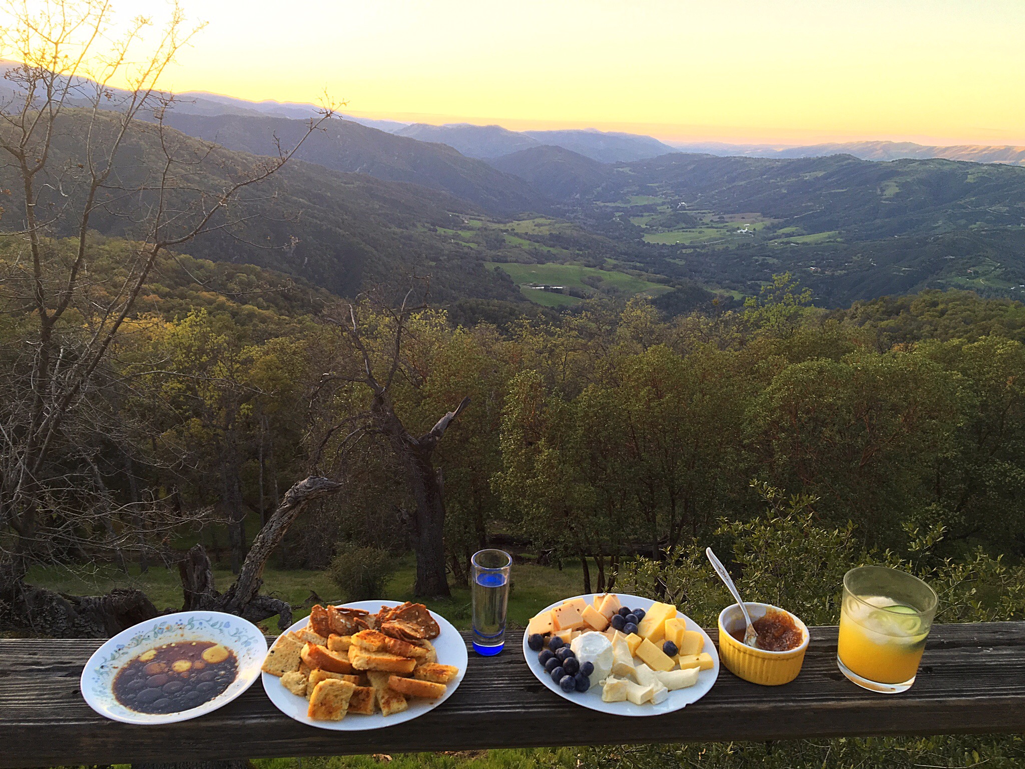 “Absolutely,” I said, looking out over Carmel Valley to the Pacific Ocean. The sun was setting, casting a soft light across the landscape. “This bourgeois picnic is divine.”