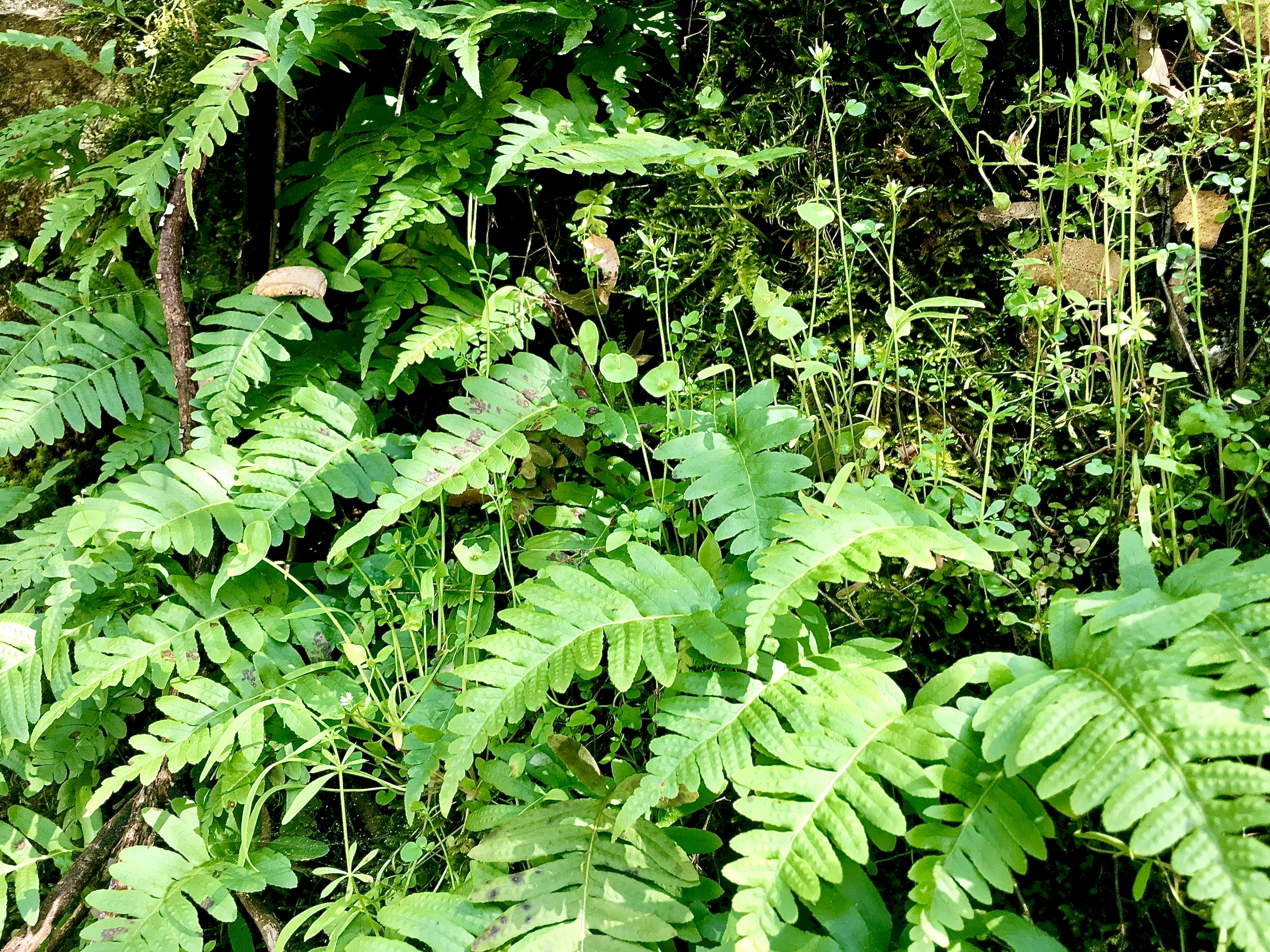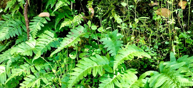 Ferns reach, offering bright hands after pulling back in fall