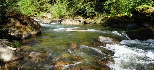 Gliding over rocks and boulders immense