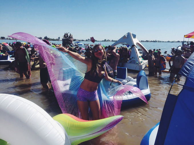 Symbiosis Gathering came in at the end of California’s festival season right on the heels of Burning Man. Though it cannot compare with the Burn, Symbiosis Gathering did not disappoint. Perhaps what set Symbiosis apart from most other curated festivals was the venue — located on the Woodward Reservoir, the festival grounds stretched along an amoeba-shaped patch of land surrounded by water. Each stage had its own plot utilizing the natural curvature of the water and land to create separate spaces; some stages required access by bridge. One stage, the Atoll, floated on a barge, and attendees either swam to it or arrived on a box-boat attached to a rope. Hosting world-class art, incredible day parties, and spectacular performers, Symbiosis reached the pinnacle of a curated festival experience.